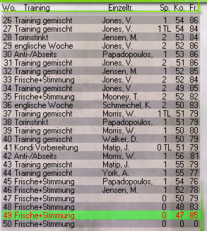3.6. Trainingswoche "Saisonende" ist je nach Version mit "Technik, Stimmung oder TW-Training" gefüllt und soll die Frische fördern, welche mit in die neue Saison genommen wird.
