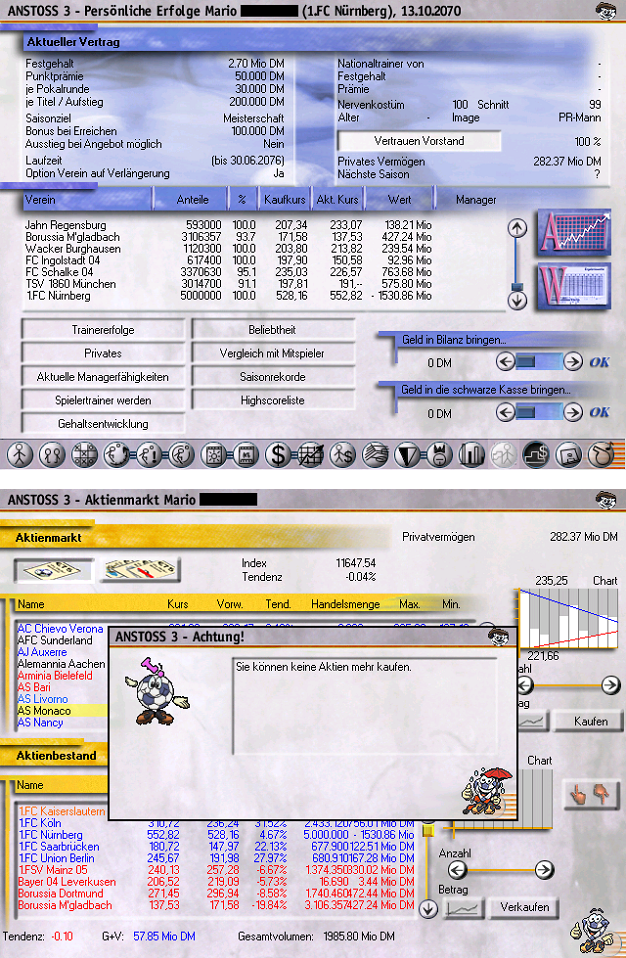 Nicht ganz. Ich hab 2te Spieler erstellt, Vereine übernommen, bin an die Börse gegangen, hab das Stadion ausgebaut und bin zurückgetreten.