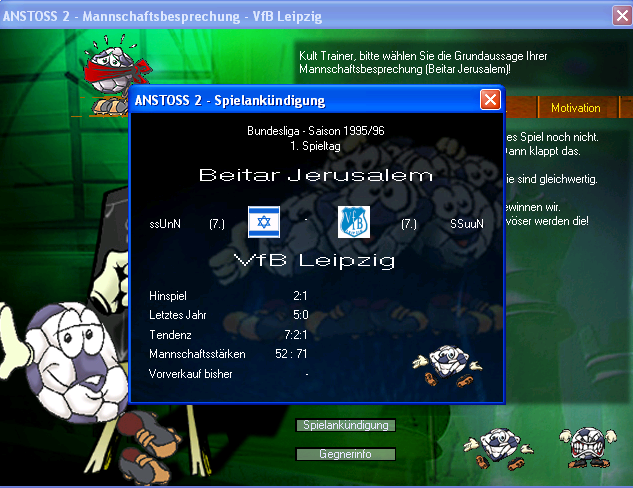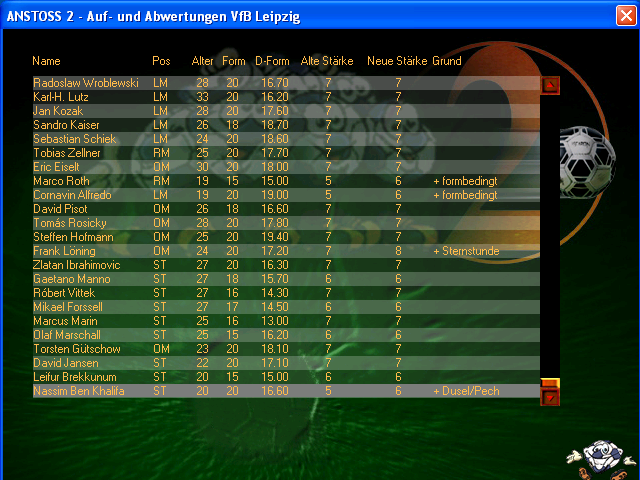 Auf jeden Fall war nach dem Zwangsabstieg erst mal die Motivation meiner ganzen 12er und so im Eimer wegen zu schlechter Liga. Weiß aber nicht mehr, welcher Bereich bei der Motivation betroffen war, also ob man den mittels Einzelgesprächen ausgleichen konnte.
