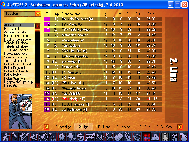 Wer selbst mal in der "4. Liga" spielen will, für den habe ich hier zwei Saves zu Saisonbeginn. Einer ohne Trainingslager, der andere mit den Anden. Ich selbst hatte keine sinnvollen Trainingslager. Die ersten 5 in der Liste bei den Elfmeterschützen sind übrigens "Mann ohne Nerven" und treffen daher den ein oder anderen Elfer mehr.