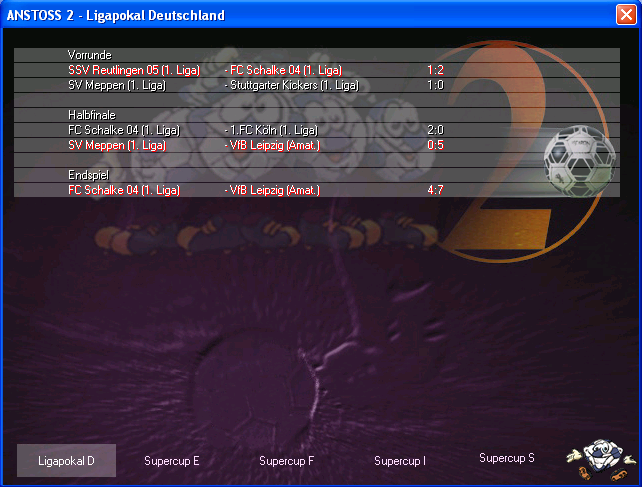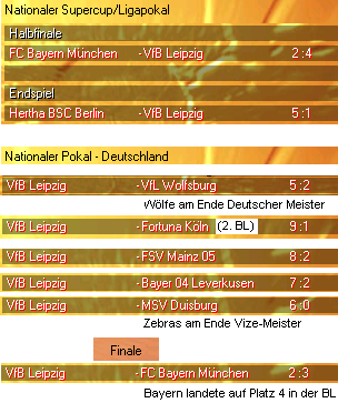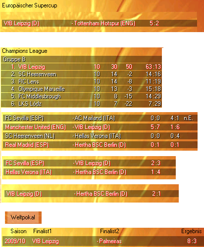 Nach einigem Neuladen hat es irgendwann mit dem Vereinswechsel zur neuen Saison geklappt. Auch in der "4. Liga" darf man also Ligapokal, Euro Supercup, Champions League und Weltpokal feiern. DFB-Pokal nicht, da ja aus der RL nur die Aufsteiger und jeweils besten 4 Nicht-Aufsteiger teilnehmen.