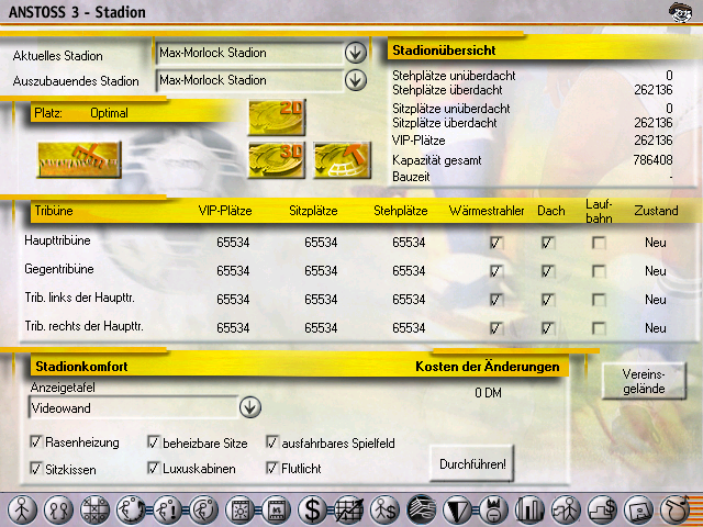 Du baust eben das Traumstadion (3, 2 geht auch), wenn es fertig ist, als auszubauendes Stadion eintragen und an den Pfeilen mit der Kapazität so rumspielen, bis du pro Block 65.534 Zuschauer hast. Also, VIP Hauptribüne, Stehplatz und Sitzplatz je 65.534 Zuschauer und dass dann für alle 4 Teile des Stadions.