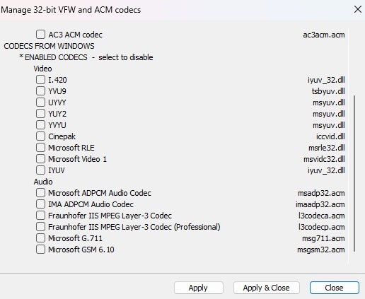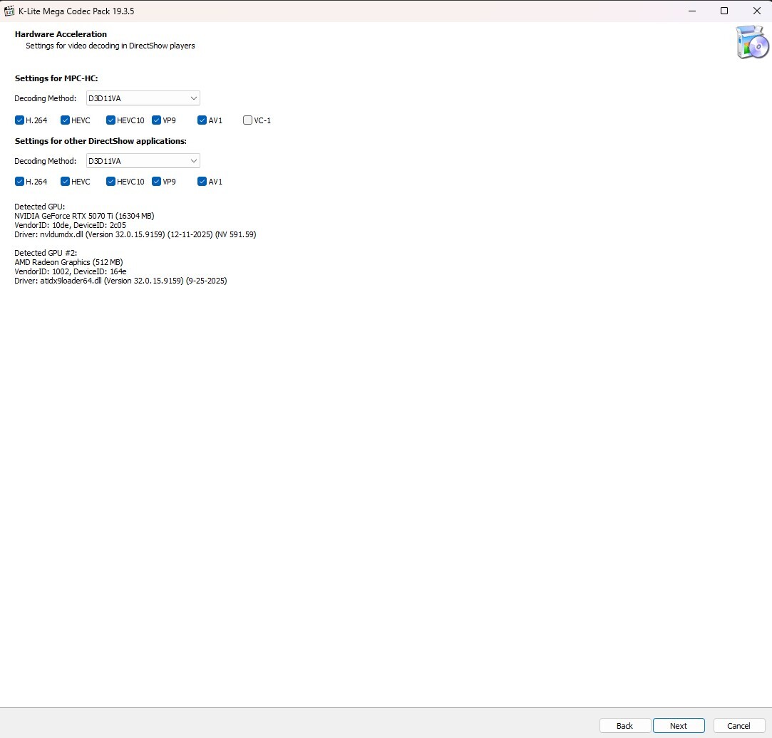 Zitat von: Schimatzu1 am 24. Dezember 2025, 20:56:08Ich hab K-Lite codepack Mega 19.3.5 und es ist vorhanden.