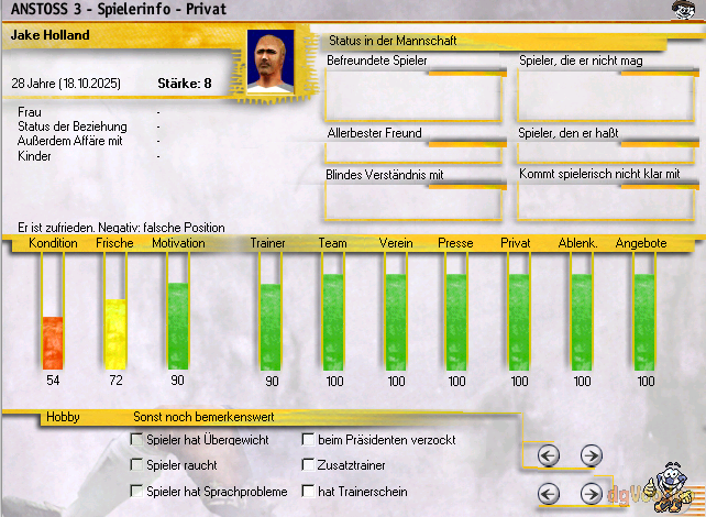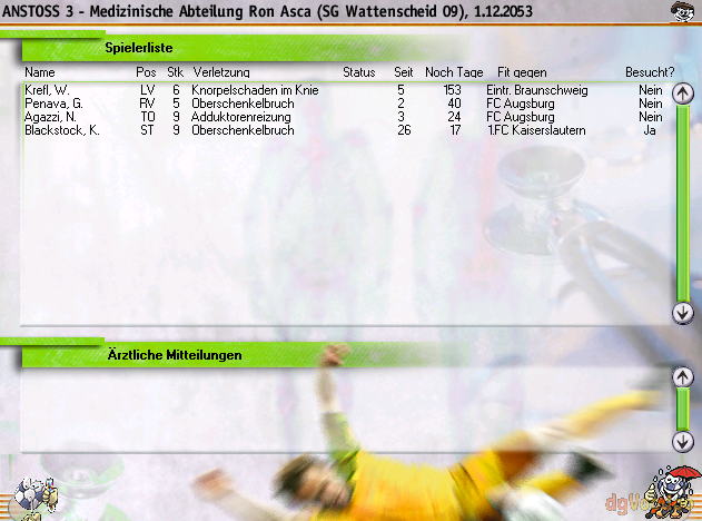 Zitat von: WillMBrodie am Gestern um 21:23:43Zwei Verletzte ist ja nett... Mir wurden heute fünf Stammspieler kaputt getreten und dann erzählt ein Wechselspieler von mir innerhalb von 6 Minuten gelb-rot...